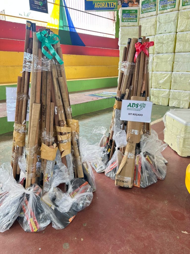Em Japurá, ADS fez a doação de 20 kits roçado, contendo facões, foices, enxadas, limas, machados e cavadeiras, além de 600 mudas de café e mil sacos de ráfia para produtores da agricultura familiar do município.