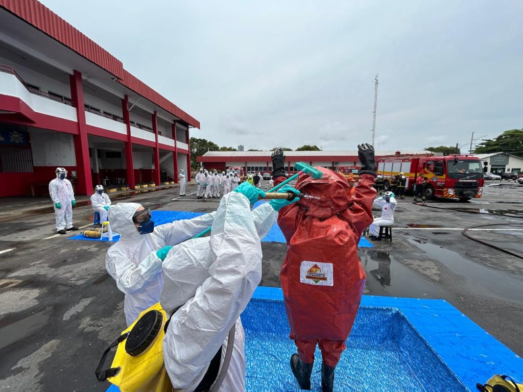 Mais de 50 alunos do Curso de Formação de Oficiais (CFO) do Corpo de Bombeiros Militar do Amazonas (CBMAM) participaram, nesta quinta-feira (02/10), de um treinamento de emergência envolvendo produtos químicos em Manaus. O objetivo é preparar os profissionais para atuação em uma situação real.