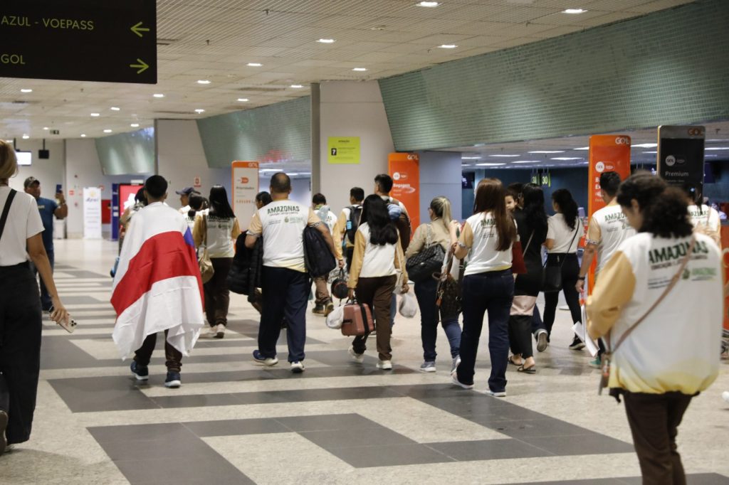 Com o apoio do Governo do Amazonas, 17 estudantes das redes estaduais e municipais de ensino, três professores e quatro representantes da Comissão Organizadora Estadual – COE embarcaram na manhã deste domingo (05/10) para representar o estado na 6ª Conferência Nacional Infantojuvenil pelo Meio Ambiente (CNIJMA) com o tema “Educação e Justiça Climática”, que ocorre em Brasília, nos dias 6 a 10 de outubro.