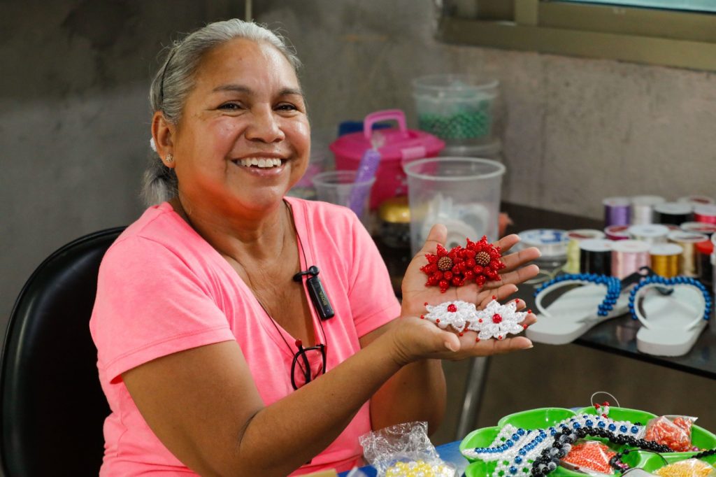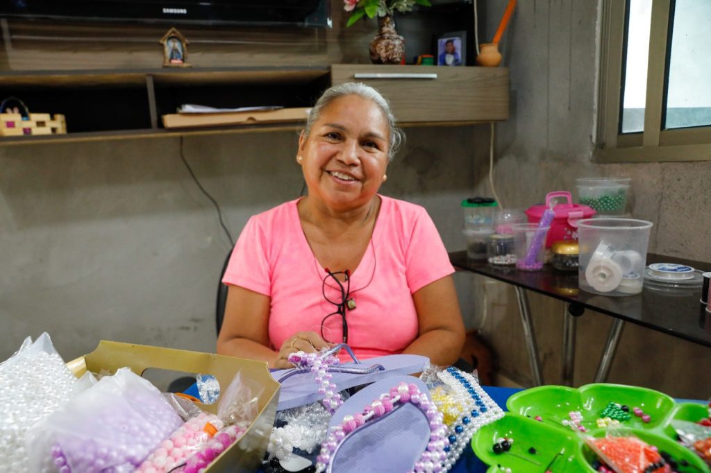 A artesã Inês Pinheiro, foi uma das beneficiárias da linha de crédito ‘Empreender no Envelhecer’. Ela atua como artesã desde 2003 e com a linha de crédito conseguiu recursos necessários para expandir seus serviços e melhorar o empreendimento.