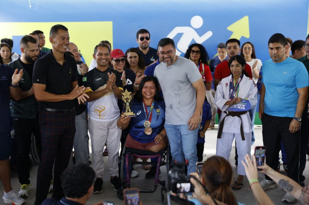 O governador Wilson Lima também recebeu, de forma simbólica e como forma de agradecimento, as medalhas Olímpicas conquistadas pelo velocista Sandro Viana, bronze nos Jogos Olímpicos de Pequim 2008, e pela halterofilista Maria de Fátima, que também ganhou a medalha de bronze nos Jogos Paralímpicos de Paris 2024.
