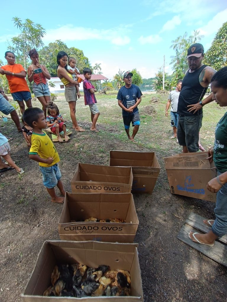 O técnico ressaltou também o importante apoio da Unloc/Santa Isabel do Rio Negro, que auxiliou na logística do transporte dos 200 pintos até a comunidade, localizada a uma distância de 3 horas de barco da sede de São Gabriel da Cachoeira.