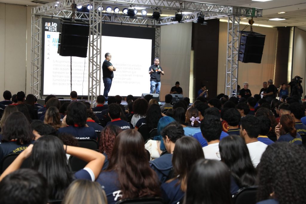 Em mais um ano de parceria entre a Secretaria de Estado de Educação e Desporto Escolar e a Rede Amazônica, mais de 2 mil alunos da rede estadual estiveram presentes no primeiro dia da revisão para o Exame Nacional do Ensino Médio (Enem) proporcionada pelo “Aulão na Rede”, na terça-feira (04/11). O aulão, que continua nesta quarta-feira (05/11), reúne estudantes de escolas estaduais da capital amazonense de todas as Coordenadorias Distritais de Educação (CDEs), além da transmissão ao vivo, pelo site do G1 Amazonas, para discentes do interior do estado.