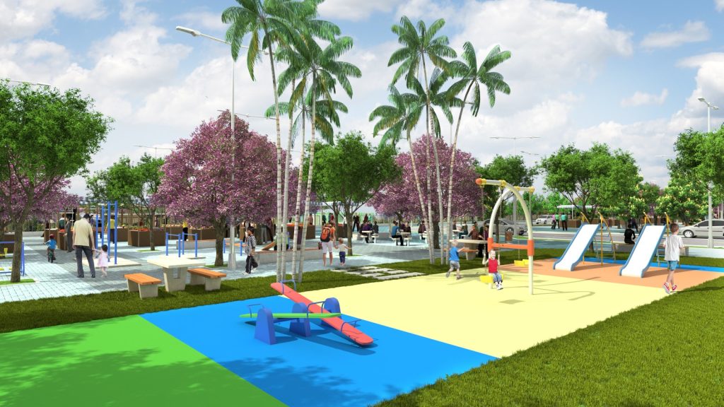 Entre os empreendimentos previstos está o Parque Santa Clara, localizado no bairro de mesmo nome, ao norte da área de intervenção. O espaço terá 2.771,03 metros quadrados e contará com calçadão com três metros de largura, áreas verdes, mobiliário urbano, iluminação ornamental, estacionamento e rampas de acessibilidade, assegurando inclusão e mobilidade para pessoas com deficiência.