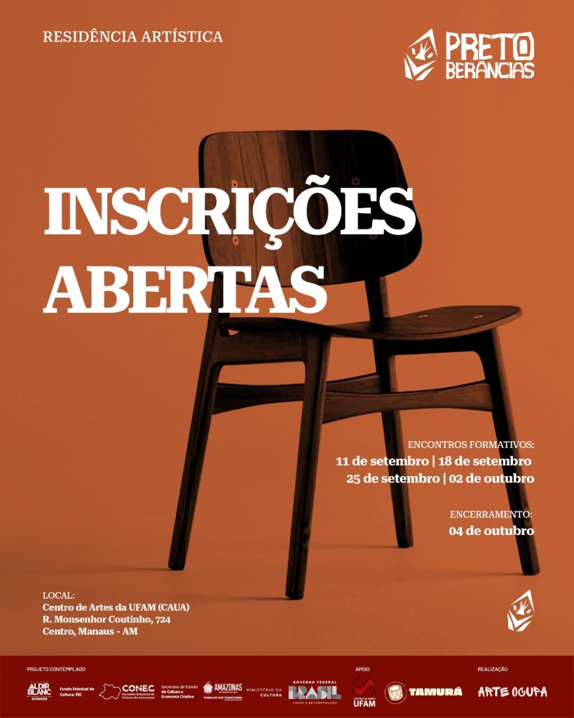O Coletivo Arte Ocupa lança a chamada para a Residência Artística Pretoberâncias, iniciativa contemplada pelo Edital de Chamamento Público Nº 10/2024 – Fomento à Execução de Ações Culturais de Proponentes Negros, via Política Nacional Aldir Blanc de Fomento à Cultura e com o apoio do Governo do Amazonas, por meio da Secretaria de Estado de Cultura e Economia Criativa.
