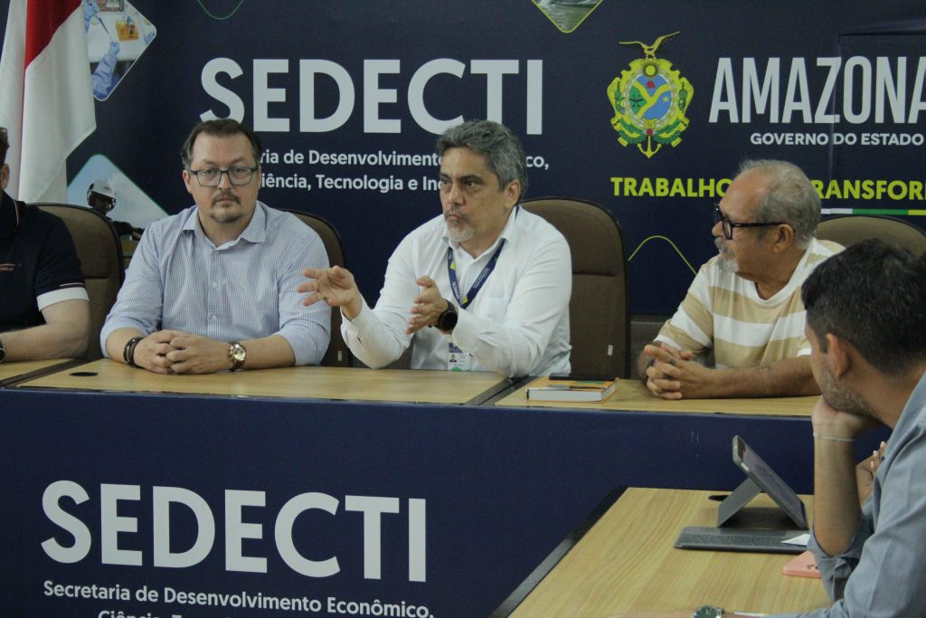 Participaram da reunião também a chefe do Departamento de Tecnologia e Inovação (DTI), Débora Holanda; a chefe do Departamento de Bioeconomia e Ações Estratégicas (DBA), Milena Barker; e o técnico do Departamento de Atração de Investimentos e Comércio Exterior (Daice), Guilherme Vilagelim.